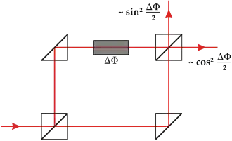 A photon that enters the interferometer from the left will then be acted upon with a beam splitter , a phase shifter , and another beam splitter , and so end up in the state and the probabilities that it will be detected at the right or at the top are given respectively by One can therefore use the Mach–Zehnder interferometer to estimate the phase shift by estimating these probabilities.