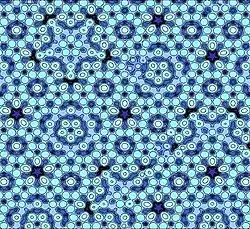 - ↑ Ishimasa, T.; Nissen, H.-U.; Fukano, Y. (1985). "New ordered state between crystalline and amorphous in Ni-Cr particles". Physical Review Letters. 55 (5): 511–513. Bibcode:1985PhRvL..55..511I. doi:10.1103/PhysRevLett.55.511. PMID 10032372.