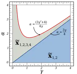 The Rabinovich–Fabrikant system has five hyperbolic equilibrium points, one at the origin and four dependent on the system parameters α and γ:[2]