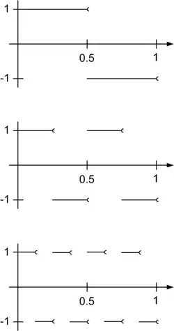 In mathematics, in particular in functional analysis, the Rademacher system, named after Hans Rademacher, is an incomplete orthogonal system of functions on the unit interval of the following form: