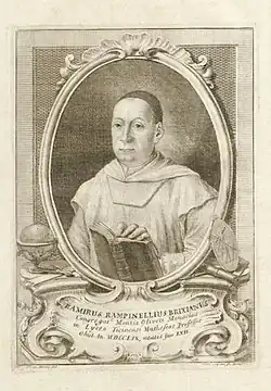 Ramiro Rampinelli, born Lodovico Rampinelli (1697 – 1759), was an Italian mathematician and physicist. He was a monk in the Olivetan Order. He had a decisive influence on the spread of mathematical analysis, algebra and mathematical physics in the best universities of Italy.[1] He is one of the best known Italian scholars in the field of infinitesimal mathematics of the first half of the 18th century.