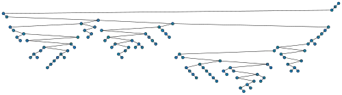 Devroye and Robson consider a related continuous-time random process in which each external node is eventually replaced by an internal node with two external children, at an exponentially distributed time after its first appearance as an external node. The number of external nodes in the tree, at any time, is modeled by a simple birth process or Yule process in which the members of a population give birth at a constant rate: giving birth to one child, in the Yule process, corresponds to being replaced by two children, in Devroye and Robson's model. If this process is stopped at any fixed time, the result is a binary tree of a random size (depending on the stopping time), distributed according to the random permutation model for that size. Devroye and Robson use this model as part of an algorithm to quickly generate trees in the random permutation model, described by their numbers of nodes at each depth rather than by their exact structure.[32] A discrete variant of this process starts with a tree consisting of a single external node, and repeatedly replaces a randomly-chosen external node by an internal node with two external children. Again, if this is stopped at a fixed time (with a fixed size), the resulting tree is distributed according to the random permutation model for that size.[1]
