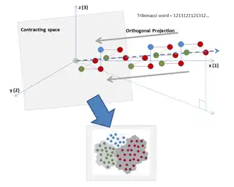 Consider, now, the space with cartesian coordinates (x,y,z). The Rauzy fractal is constructed this way:[5]