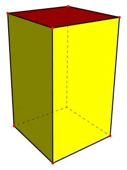 - ↑ This is also called square cuboid, square box, or right square prism. However, this is sometimes ambiguously called a square prism.
