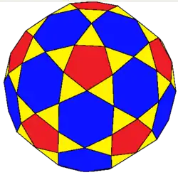 | Faces | 92: 60 isosceles triangles 12 pentagons 20 hexagons |