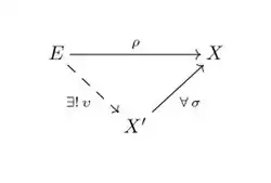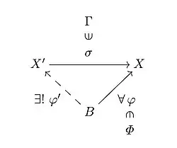 - A morphism in is called an enrichment of the object in the class of morphisms by means of the class of morphisms , if , and for any morphism from the class there exists a unique morphism in such that .