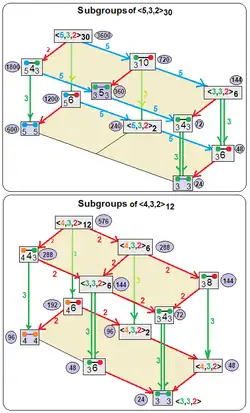 ![]() Subgroups from <5,3,2>30, <4,3,2>12 and <3,3,2>6 |