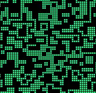 When started with a smaller field of random cells centered within a larger region of dead cells, many small patterns similar to Life's glider escape from the central random area and interact with each other. The Critters rule can also support more complex spaceships of varying speeds as well as oscillators with infinitely many different periods.[9]