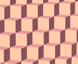 The rhombille tiling can be interpreted as an isometric projection view of a set of cubes in two different ways, forming a reversible figure related to the Necker cube. In this context it is known as the "reversible cubes" illusion.[8]