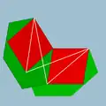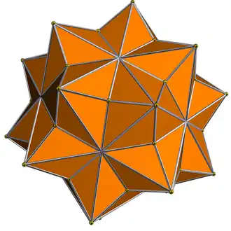 In geometry, the rhombicosahedron is a nonconvex uniform polyhedron, indexed as U56. It has 50 faces (30 squares and 20 hexagons), 120 edges and 60 vertices.[1] Its vertex figure is an antiparallelogram.