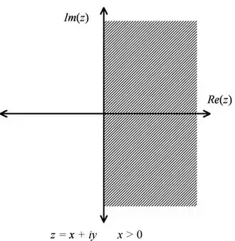 In complex analysis, the (open) right half-plane is the set of all points in the complex plane whose real part is strictly positive, that is, the set .
