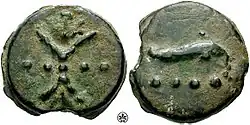 - ↑ Boyne, William (1968). A manual of Roman coins. p. 13.
