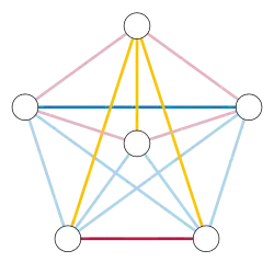 The Graham–Pollak theorem, which Graham published with Henry O. Pollak in two papers in 1971 and 1972,[A71b][A72a] states that if the edges of an -vertex complete graph are partitioned into complete bipartite subgraphs, then at least subgraphs are needed. Graham and Pollak provided a simple proof using linear algebra; despite the combinatorial nature of the statement and multiple publications of alternative proofs since their work, all known proofs require linear algebra.[23]