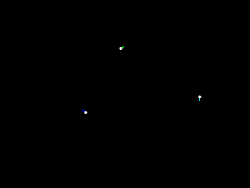 This shows the computational time in real time used during a 3-body simulation evolved with the Runge-Kutta-Fehlberg method. Most of the computer time is spent when the bodies pass close by and are susceptible to numerical error.
