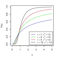 where is the degrees of freedom parameter and is the scale parameter. The cumulative distribution function is