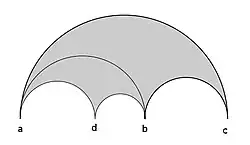 Note that, as a consequence of Tits' theorem, the generators (left) satisfy the conditions (right): This gives a presentation of the orientation-preserving index 2 normal subgroup Γ1 of Γ. The presentation corresponds to the fundamental domain obtained by reflecting two sides of the geodesic triangle to form a geodesic parallelogram (a special case of Poincaré's polygon theorem).[26]