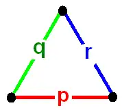A Schwarz triangle is represented graphically by a triangular graph. Each node represents an edge (mirror) of the Schwarz triangle. Each edge is labeled by a rational value corresponding to the reflection order, being π/vertex angle.