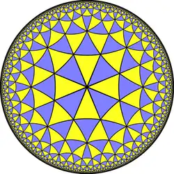 In geometry, a Schwarz triangle, named after Hermann Schwarz, is a spherical triangle that can be used to tile a sphere (spherical tiling), possibly overlapping, through reflections in its edges. They were classified in Schwarz (1873).