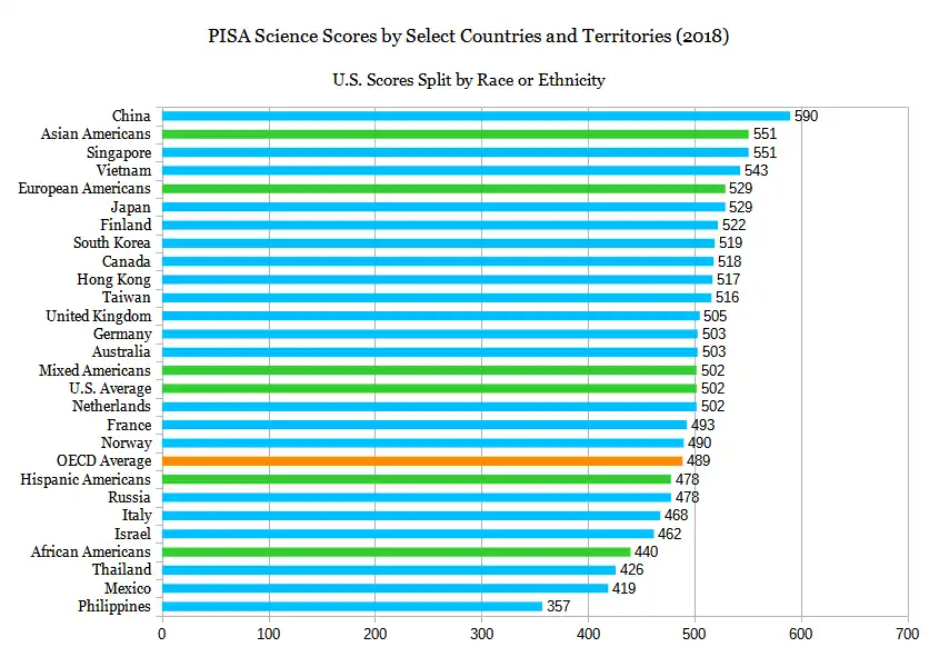 In the 2015 run of the international assessment test the Program for International Student Assessment (PISA), American students came out 35th in mathematics, 24th in reading, and 25th in science, out of 109 countries. The United States also ranked 29th in the percentage of 24-year-olds with science or mathematics degrees.[83]