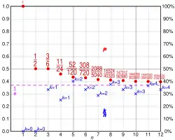 - OEIS sequence A054404 (Number of daughters to wait before picking in sultan's dowry problem with n daughters)
