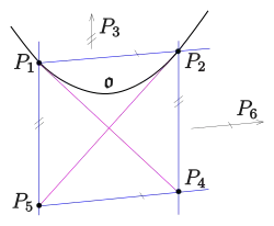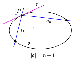 Remark: Property (P3) is fulfilled for any oval in a pappian projective plane of characteristic 2 with a nucleus (all tangents meet at the nucleus). Hence in this case (P3) is also true for non-conic ovals.[2]