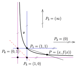 such that is the tangent at , the x-axis is the tangent at the point and contains the point . Furthermore, we set (s. image)