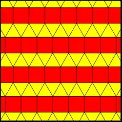 The stacking of the finite faces of these two prismatic tilings constructs one non-Wythoffian uniform tiling of the plane. It is called the elongated triangular tiling, composed of alternating layers of squares and triangles.
