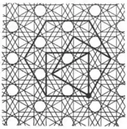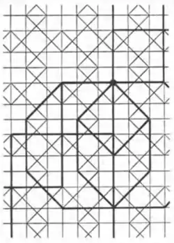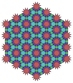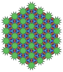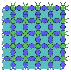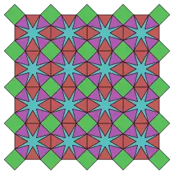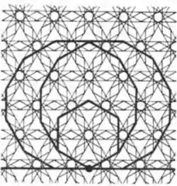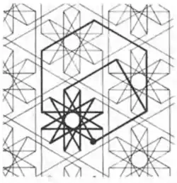 - ↑ Tilings and Patterns, Branko Gruenbaum, G. C. Shephard, 1987, 2.5 Tilings using star polygons, pp. 82–85.
