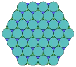 Tilings 3.7 through 3.10 have the same edge arrangement as 2.1 and 2.2; 3.17 through 3.20 have the same edge arrangement as 2.10 through 2.13; 3.21 through 3.24 have the same edge arrangement as 2.18 through 2.23; and 3.25 through 3.33 have the same edge arrangement as 1.25 (the regular triangular tiling).[2]