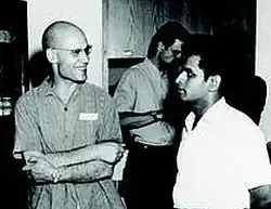 ![]() Shreeram Abhyankar (right) with Alexander Grothendieck (left), Michael Artin in the background, at Montreal, Quebec, Canada in 1970. | |
