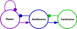 - ↑ Dambacher, Jeffrey M.; Li, Hiram W.; Rossignol, Philippe A. (2002). "Relevance of community structure in assessing indeterminacy of ecological predictions". Ecology. 83 (5): 1372–1385. doi:10.1890/0012-9658(2002)083[1372:rocsia]2.0.co;2. JSTOR 3071950.
