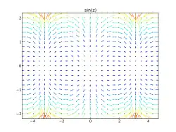 - ↑ "Why are the phase portrait of the simple plane pendulum and a domain coloring of sin(z) so similar?". math.stackexchange.com. Retrieved 2019-08-12.