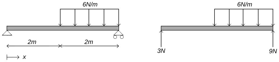 The boundary condition u = 0 at x = 4 m allows us to solve for c = −7 Nm2