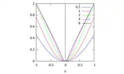 In mathematics, a smooth maximum of an indexed family x1, ..., xn of numbers is a smooth approximation to the maximum function meaning a parametric family of functions such that for every α, the function is smooth, and the family converges to the maximum function as . The concept of smooth minimum is similarly defined. In many cases, a single family approximates both: maximum as the parameter goes to positive infinity, minimum as the parameter goes to negative infinity; in symbols, as and as . The term can also be used loosely for a specific smooth function that behaves similarly to a maximum, without necessarily being part of a parametrized family.