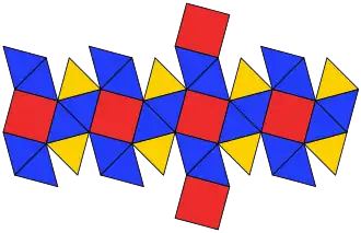 | Dihedral angle (degrees) | triangle-to-triangle: 153.23° triangle-to-square: 142.98° |