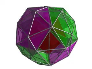 Three sets of 8 icosahedra (red, green, and blue) Two sets of tetrahedra: 96 (yellow) and 24 (cyan) |
