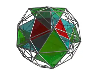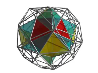 It is one of three semiregular 4-polytopes made of two or more cells which are Platonic solids, discovered by Thorold Gosset in his 1900 paper.[2] He called it a tetricosahedric for being made of tetrahedron and icosahedron cells. (The other two are the rectified 5-cell and rectified 600-cell.)