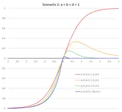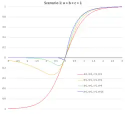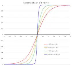 A family of recurrence-generated parametric Soboleva modified hyperbolic tangent activation functions (NPSMHTAF, FPSMHTAF) was studied with parameters a = c and b = d.[9] It is worth noting that in this case, the function is not sensitive to flipping the left and right-sides parameters: