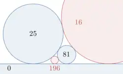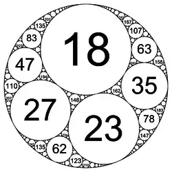 - 1 2 3 4 Graham, Ronald L.; Lagarias, Jeffrey C.; Mallows, Colin L.; Wilks, Allan R.; Yan, Catherine H. (2003), "Apollonian circle packings: number theory", Journal of Number Theory, 100 (1): 1–45, arXiv:math/0009113, doi:10.1016/S0022-314X(03)00015-5, MR 1971245