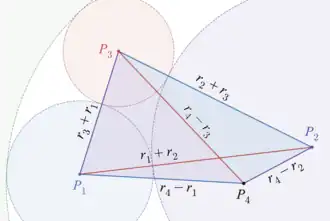 - ↑ Takinami, Susumu; Michiwaki, Yoshimasa (1984), "On the Descartes circle theorem" (PDF), Journal for History of Mathematics, 1 (1), Korean Society for History of Mathematics: 1–8