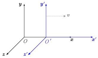 - The x, y, z axes of frame S are oriented parallel to the respective primed axes of frame S′.