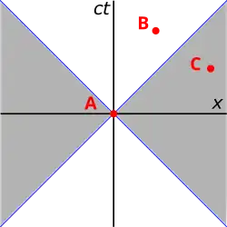 - spacetime interval between two events: a measure of separation that generalizes distance:[4]: 9