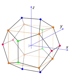 The following Cartesian coordinates define the twenty vertices of a regular dodecahedron centered at the origin and suitably scaled and oriented:[20]