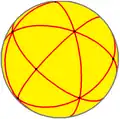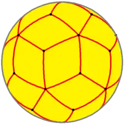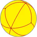 In geometry, a spherical polyhedron or spherical tiling is a tiling of the sphere in which the surface is divided or partitioned by great arcs into bounded regions called spherical polygons. A polyhedron whose vertices are equidistant from its center can be conveniently studied by projecting its edges onto the sphere to obtain a corresponding spherical polyhedron.