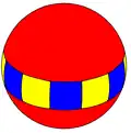 The most familiar spherical polyhedron is the soccer ball, thought of as a spherical truncated icosahedron. The next most popular spherical polyhedron is the beach ball, thought of as a hosohedron.