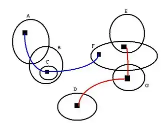 In the universe of discourse defined by this Euler diagram, in addition to the conjunctions specified above, all of the sets from A through G, except for C, are available separately. The set C is only available as a subset of B. Often, in complicated diagrams, singleton sets and/or conjunctions may be obscured by other set combinations.