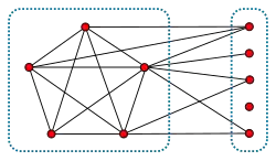 - ↑ Hammer & Simeone (1981); Tyshkevich (1980); Tyshkevich, Melnikow & Kotov (1981); Golumbic (1980), Theorem 6.7 and Corollary 6.8, p. 154; Brandstädt, Le & Spinrad (1999), Theorem 13.3.2, p. 203. Merris (2003) further investigates the degree sequences of split graphs.