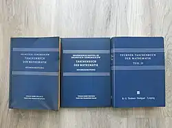 The expanded German translation Taschenbuch der Mathematik (literally: "Pocketbook of mathematics") by Viktor Ziegler[4][3][nb 3] was first published in 1958 by B. G. Teubner in Leipzig.[4][1][3][10] It was honoured as "Schönstes Buch" ("Most beautiful book") of the year 1958.[11][4][12]