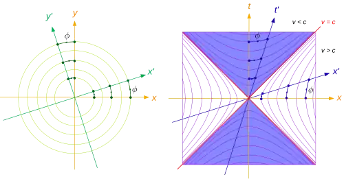 - ↑ Louis Kauffman (1985) "Transformations in Special Relativity", International Journal of Theoretical Physics 24:223–36