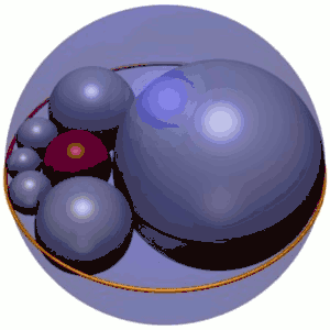 Hierarchical Steiner chains are yet another generalization. If the two given circles of an ordinary Steiner chain are nested, i.e., if one lies entirely within the other, then the larger given circle circumscribes the Steiner-chain circles. In a hierarchical Steiner chain, each circle of a Steiner chain is itself the circumscribing given circle of another Steiner chain within it; this process may be repeated indefinitely, forming a fractal.